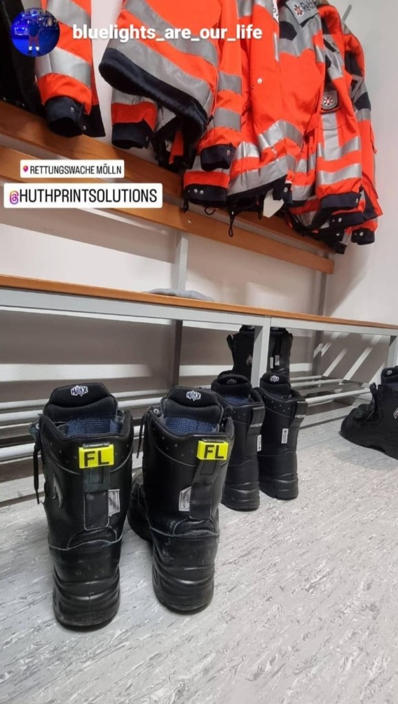 Auf der Wache kommen schnell drei, vier oder mehr Paar Schuhe zusammen. Der Melder klingelt und dann sucht man seine Schuhe oder zieht versehentlich sogar die falschen an. Meistens werden die Schuhe angemalt, mit Pflasterstreifen beklebt oder anders gekennzeichnet. Mit diesen Namenschildern hat man eine stabile, elegante und zuverlässige Lösung.
